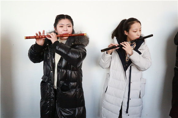 在中国乐器演奏考场外记者看到,众多艺考生在考场外楼道里争分夺秒,争取最后时间打磨作品。笛子、琵琶、古筝、二胡等乐器互不妨碍,考生们沉浸在自己的作品中,还有的干脆跪坐在地上,悠扬的旋律,楼道里秒变“演唱会”。