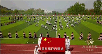 年轻的学生们从四面八方奔涌而来,热烈、紧张的氛围一下子把情绪代入到动荡年代,从《毕业歌》《高举革命大旗》到《青春啊青春》《歌唱祖国》,山东艺术学院在“青春,为祖国歌唱”拉歌活动中,将4首具有鲜明时代特色与青春本色的经典歌曲进行串烧、情景剧创作。