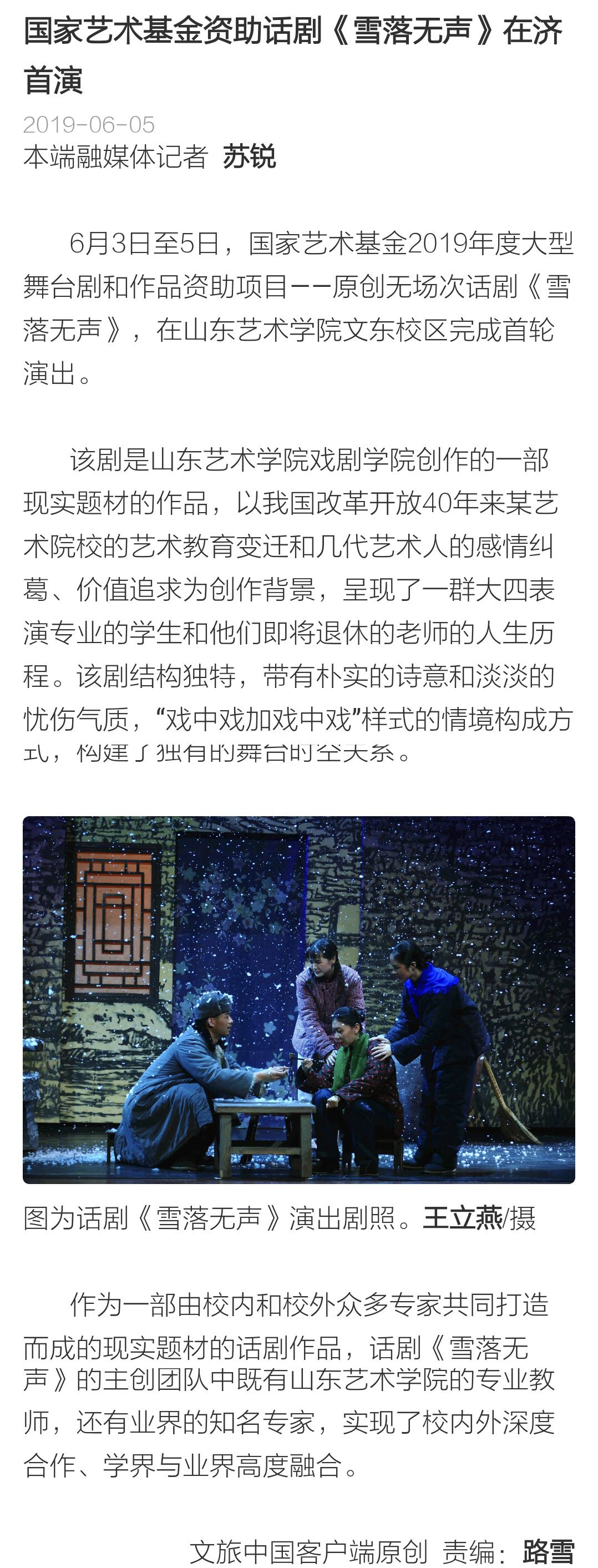【文旅中国】国家艺术基金资助话剧《雪落无声》在济首演
