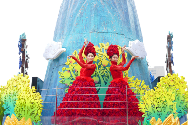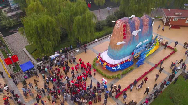 山东彩车“国泰民安”在泉城广场公开展示至10月31日。