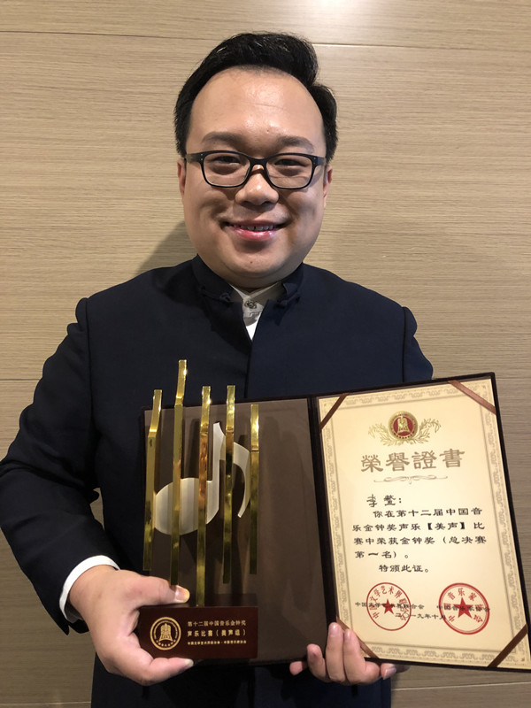10月28日,第12届中国音乐金钟奖颁奖典礼暨闭幕音乐会在成都举行,山东艺术学院青年教师李鳌斩获了本届金钟奖声乐(美声)比赛第一名。