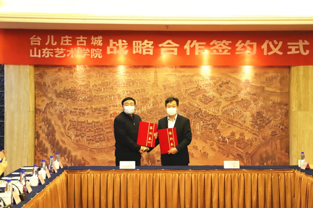 揭牌仪式前,双方进行了会谈。山东艺术学院党委书记马东骅说,加强校地、校企合作是落实服务新旧动能转换和文化强省建设的有力举措,也是学校教育教学改革的重要内容。台儿庄古城是国内规模最大的古城,是国家旅游文化的一张靓丽名片,也是艺术创作与实践的重要基地。双方签订战略合作协议,是学校与企业合作、教育与产业合作的共赢之举,必将对双方产生积极的影响。借助这次合作,学校的艺术创作实践、社会服务、学生实践实习、就业创业等一定能再上新台阶。