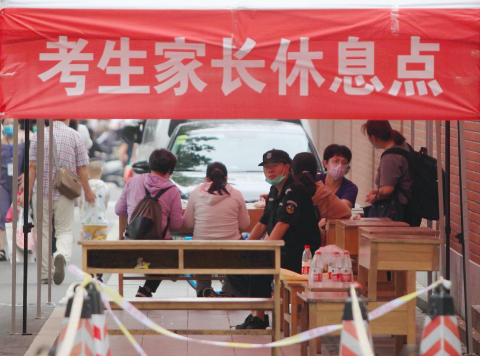 同时,出于疫情防控需求,文东校区不允许考生家长进入校园,考虑到这两天济南有降雨天气,学校在文东校区校门外为家长搭设帐篷,摆放桌椅,设置等待区。长清校区也在校园内专为家长设置了等待区域。