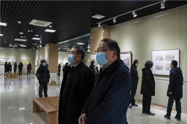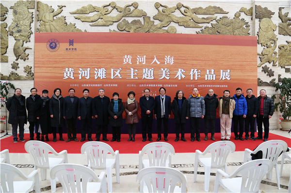 1月9日,山东艺术学院“黄河入海——黄河滩区主题美术作品展”在山东省文化馆开幕。展览由山东省文化和旅游厅、山东艺术学院主办,山东艺术学院美术学院、山东省文化馆承办,山东艺术学院艺术实践与创作处协办。山东省文化和旅游厅一级巡视员李国琳,山东省教育厅总督学刘欣堂,山东省发改委二级巡视员宋伟,山东省发改委滩区迁建推进组副处长李陈春,山东省美术家协会主席、山东美术馆馆长张望,山东省文化馆馆长王衍良,山东省美术家协会常务副主席张宜,山东省美术家协会副主席、省青年美协主席杨晓刚,山东省美术家协会驻会主席团委员孙肖嘉,济南市美术馆副馆长张辉,山东画院青年画院院长常朝晖,山东艺术学院党委书记马东骅、院长王力克、纪委书记胡凤莹、党委委员苏茂兴以及省内美术界的专家学者、山东艺术学院师生代表、各界朋友出席开幕式。开幕式由山东艺术学院党委副书记孔祥华主持。