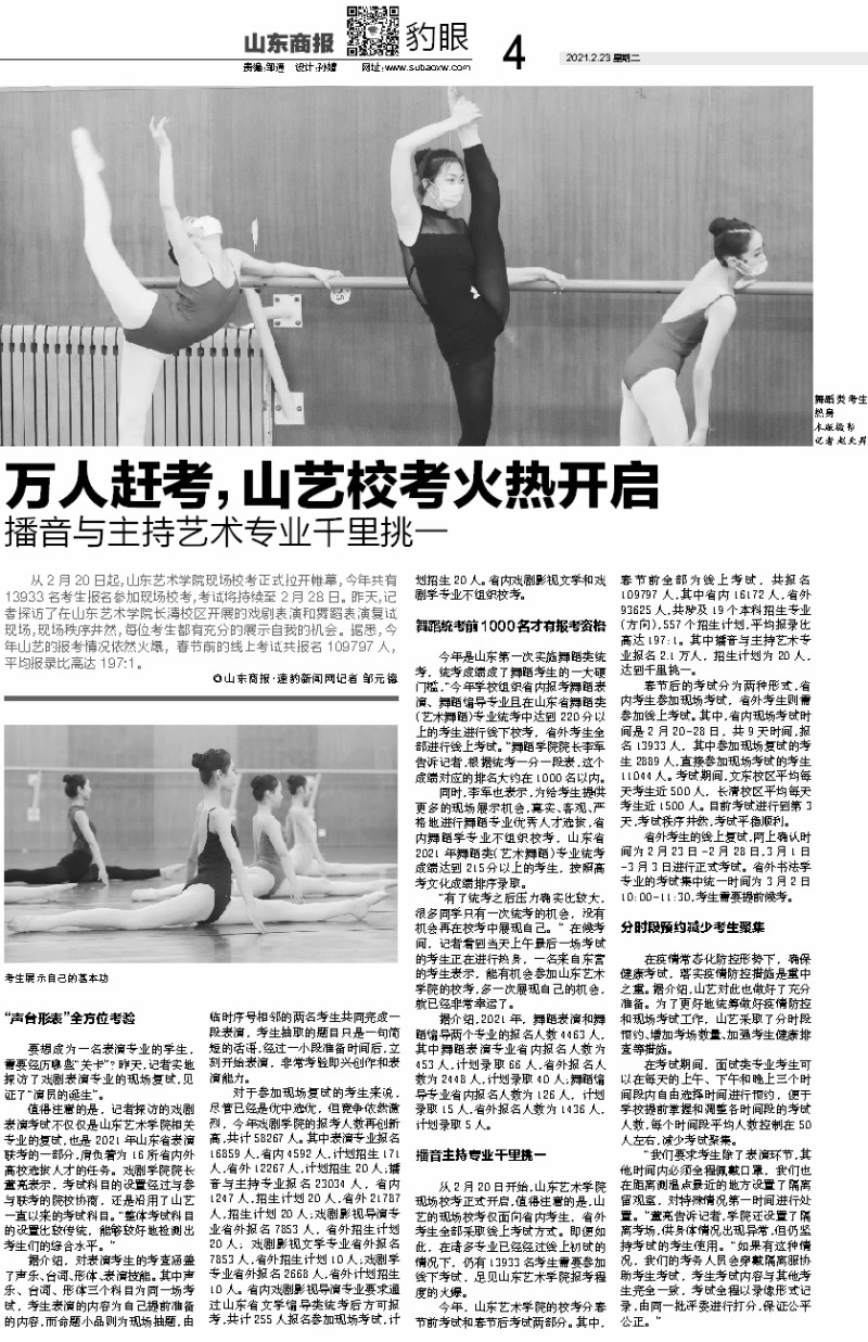 上一条:【济南时报】山艺音乐表演演唱方向初试淘汰率达94%,多人争当古琴“独苗” 下一条:【齐鲁晚报】艺考现场看“演员的诞生” 表演专业要考“四件套”