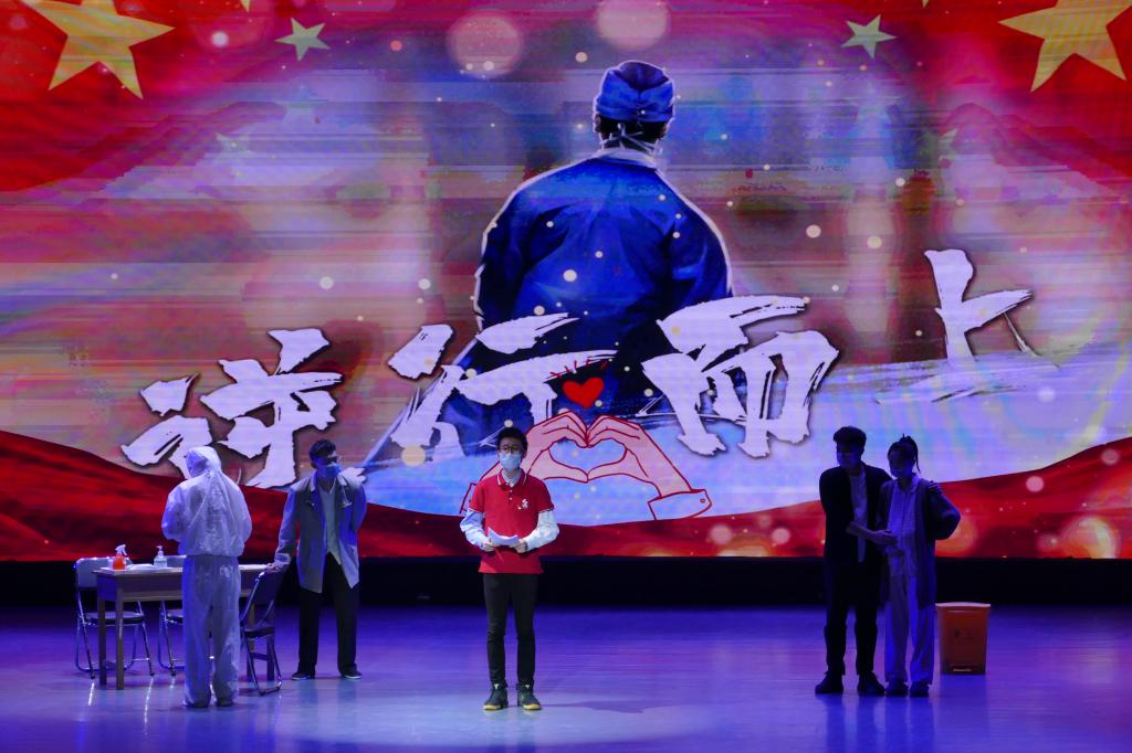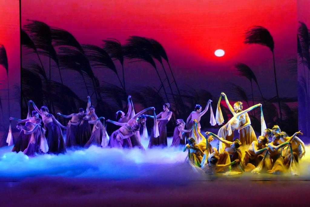 演出在合唱《在太行山上》《大河涨水沙浪沙》中拉开序幕,展现了抗日战争时期共产党人带领人民和军队艰苦奋斗,顽强奋战的宏大画面,书写了中国人民抗日战争和中国革命的壮丽史诗。钢琴独奏《肖邦前奏曲》、小提琴齐奏《快乐的女战士》、弹拨乐合奏《美好生活》、萨克斯重奏《婚宴之舞》以器乐之声扣动心弦,表达了人民群众对美好生活的热切向往。朗诵《哑巴渡》、小品《一个都不能少》向我们展示了中国共产党带领人民与病毒交锋,同洪水搏斗,不畏风雨奋勇向前,用坚韧不拔的气魄,共创出彪炳史册的中国奇迹。京剧《杨门女将》《谢瑶环》唱腔婉转细腻,身法铿锵有力,展示了山艺学子们扎实的戏曲功底。群舞《黄河岸边芦花开》以写意的创作手法,刻画了在逆境中长成,在苦涩里绽放,守护黄河坚韧不拔的芦花精神,婷而不媚,挺而不屈,以宁静与淡泊撒播着这片沧桑大地上生生不息的希望。群舞《稻·稷》《移山》以山东秧歌动态韵律为基础素材,勾勒出淳厚朴拙的劳动人民寒耕热耘,移山开路的坚韧形象,表现了劳动人民的信心、恒心和毅力。荣获中国音乐金钟奖美声唱法第一名的李鳌教授深情演唱了歌曲《祖国慈祥的母亲》《跟着共产党走》,歌颂了中国共产党历经百年风雨,为实现中华民族的伟大复兴砥砺奋进,唱出了新时代坚定跟党走,为人民谋幸福的信心与决心,为现场的观众们献上视听盛宴,将演出推向高潮。开幕式在原创歌曲《紫薇花开的路口》歌舞声中临近尾声,歌声饱含着学子们对母校深深不舍的情谊,婉转悠扬地讲述学子们的山艺故事,缓缓拉开2021“闳美山艺”山东艺术学院毕业展演季系列活动的精彩序幕。