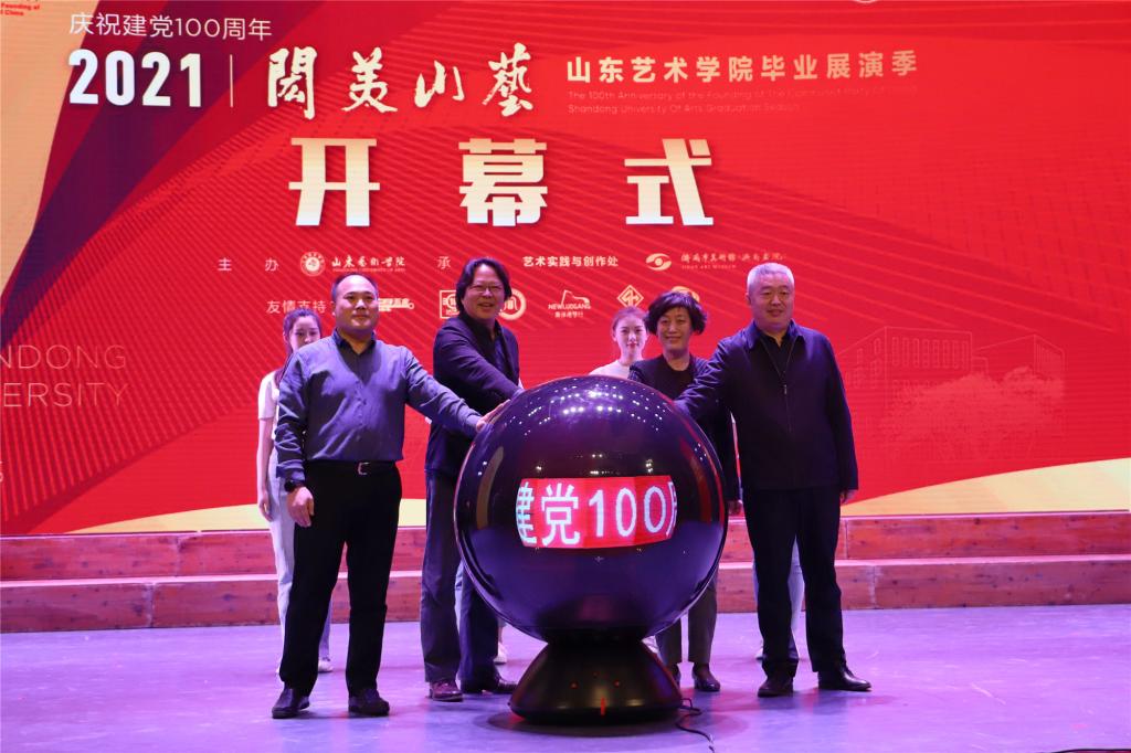5月7日晚,庆祝建党100周年——2021“闳美山艺”山东艺术学院毕业展演季开幕式在文东校区举行。山东省文化和旅游厅一级巡视员李国琳,山东省文联党组成员、副主席王映海,山东省文化和旅游厅艺术处处长张东林,山东省教育厅体卫艺处四级调研员王广森,山东艺术学院院长王力克,副院长杨西国、兰绍彤,纪委书记胡凤莹,党委委员荆雷出席开幕式。学校相关单位负责人、师生代表及社会各界观众800余人观看演出,开幕式通过雅昌艺术网艺术头条客户端线上直播全网发布。