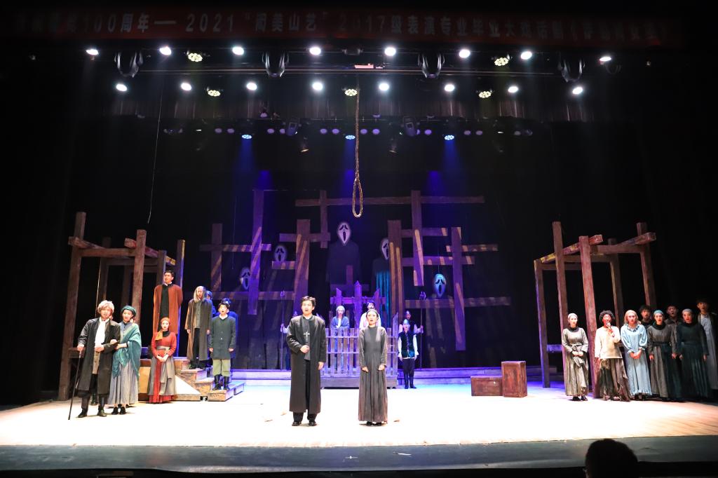 5月7日至11日,戏剧学院2017级表演专业毕业大戏《萨勒姆的女巫》在长清校区圆形剧场进行了为期5天的演出。演出采用线上线下双线模式,最大限度地让更多戏剧爱好者感受戏剧舞台和戏剧文化的魅力,线下观众场场爆满,千余名观众现场观看演出。5月8日《萨勒姆的女巫》在“艺术头条”线上平台首次直播引发网友关注,累计观看达53994人次;5月10日,该剧在大众网“海报新闻”抖音平台第二次直播,反响热烈。