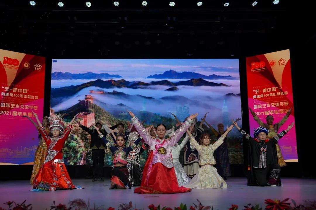 5月24日晚,山东艺术学院“艺·美中国——向建党100周年献礼”国际艺术交流学院2021届毕业展演在长清校区星空剧场举行。国际艺术交流学院班子成员、师生代表参加活动。