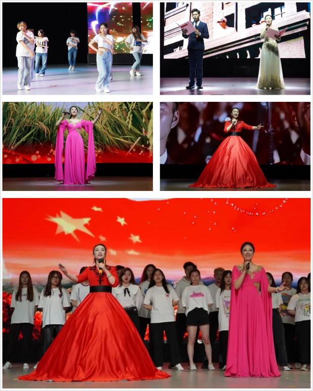 本届毕业展演以建党百年历史为脉络,立足学院专业特色,集中展现“峥嵘岁月 筑梦前行”“我们的生活充满阳光”“齐心向党 共创辉煌”三组经典人物造型设计,首次展映了数字媒体艺术专业师生创作的红色主题微电影《二亩良田》。展演现场,师生同台,精彩纷呈。活力舞蹈拉开展演序幕,退伍大学生与入校新生代表以诗歌朗诵《礼赞青春》传递出“愿以吾辈之青春 守护盛世之中华”的激情与豪迈;青年教师动情歌唱《在希望的田野上》《不忘初心》等歌曲,集中展现出新时代的美丽风貌;活动在师生同唱《我和我的祖国》的歌声中落下帷幕。