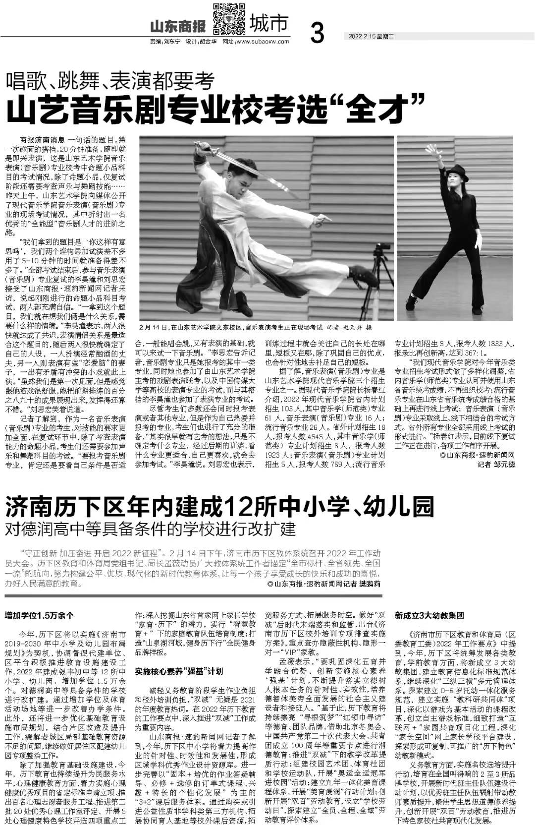 【山东商报】山艺音乐剧展业校考选“全才”