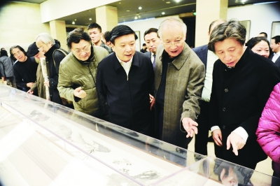 3月15日,由文化部和山东省政府联合主办,山东省文化厅和山东艺术学院共同承办的“三魂一心·于希宁诞辰一百周年艺术展”在中国美术馆开幕。山东省委副书记、省长姜大明,中宣部副部长翟卫华,文化部副部长董伟,中国文联副主席、书记处书记左中一,中国文联副主席、中国美协主席刘大为,山东省委常委、宣传部部长孙守刚,山东省政协副主席许立全,中国艺术研究院院长王文章等出席。美术界知名专家学者潘公凯、范迪安、刘曦林、邵大箴等,山东省老领导、有关部门负责人,于老亲属,山东省文化艺术界专家、教授和于老学生代表,以及社会各界朋友、众多书画爱好者等300余人参加。