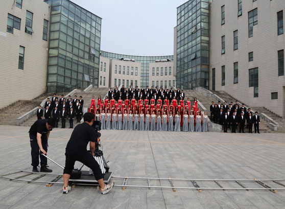 为此,学校党委高度重视,成立专业拍摄制作团队,安排党委宣传部牵头负责,拨出专项经费,责成专人负责,调动相关二级学院和部门师生与设备,全力以赴投入拍摄制作。从参与师生到围观学子与群众的反映看,可以说,MV制作活动是备受关注和高度认可的。