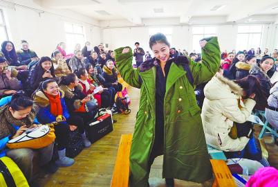 一名来自东营的17岁女孩穿着军大衣参加考试。