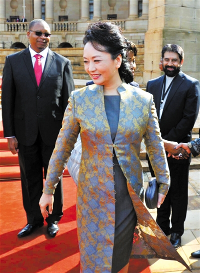 3月26日,彭丽媛在南非比勒陀利亚。她的着装引发“中国风”热议。