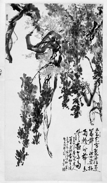 于希宁的书法,自幼即受父辈熏陶,喜爱临池,未尝一日稍有懈怠。他曾学王右军、颜真卿、黄山谷等,运笔工稳圆浑,笔势开张,点画飞动,雄伟峭逸,深得《瘗鹤铭》、《松风阁》之风神。他又将书法行笔飘逸洒脱、遒劲有力、清刚跌宕之势融入绘画中,所写老枝铁柯,枯藤芳草,使转有力。其笔墨运动中的丰富而微妙的表现力,正是得力于他对行草、篆籀的多年体悟。书法的造诣及引书入画的实践,表明了于希宁对笔墨文化内涵和艺术表现语言有独到的理解,这是他对中国艺术气韵生动的深刻诠释。
