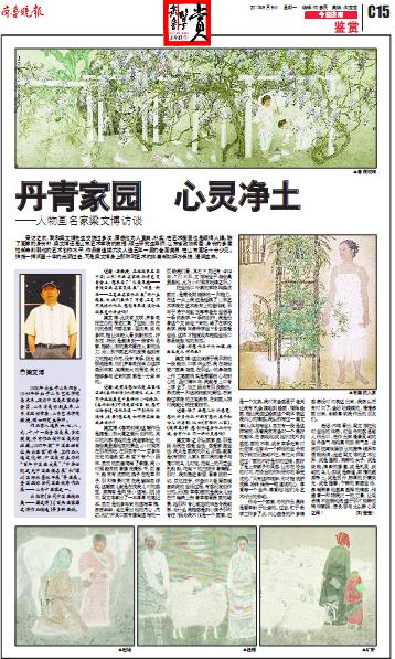 后记:不难看出,梁文博把他对生活的体悟、对生命的感恩融入作品中,使作品弥漫着灵动的生命逸气与纯真的自然气息,追求那脱离喧嚣俗世的澄净境界和儒雅格调。走进梁文博的艺术世界,或是温雅、娴静的女子,或是淡雅、清新的藤蔓,或是机灵、跃动的鸟儿;抑或是静谧、肃穆的藏原净土,或是质朴、醇厚的沂蒙风光,或是温馨、宁静的家庭生活,都凝聚着他至真至深的情感,传递着一种物我归一的力量,让观者情不自禁地流连于那片恬静的精神家园,想长居与此以静心灵之躁!