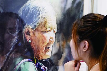 26日,在山东艺术学院美术馆,一名学生欣赏油画《母亲》。当日,山艺艺专时期师生美术作品展开幕,200余件(幅)作品展示了师生们五十年来在各自艺术领域取得的成果。
