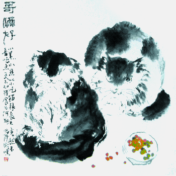 《哥俩好》沈光伟(两只猫的处理:一个趋圆,一个趋方)