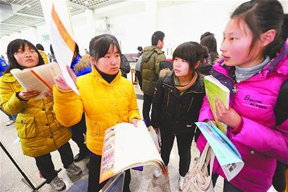 艺考生在挑选自己中意的院校。(王锋 摄)