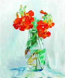 编者按 “和谐之韵”陈凤玉意象油画展今天下午在济南聚雅斋美术馆开幕。在寒冷的冬日,这些美丽的花儿给我们带来了心灵的温暖。作为我省著名画家和美术教育家,陈凤玉兼擅中西绘画,尤长仕女和墨鱼。近年来,她转向油画创作,其《花之恋》系列广受好评。这次展览集中展示了陈凤玉近年来创作的意象油画,题材以花卉为主,展现了她对真、善、美的追求。