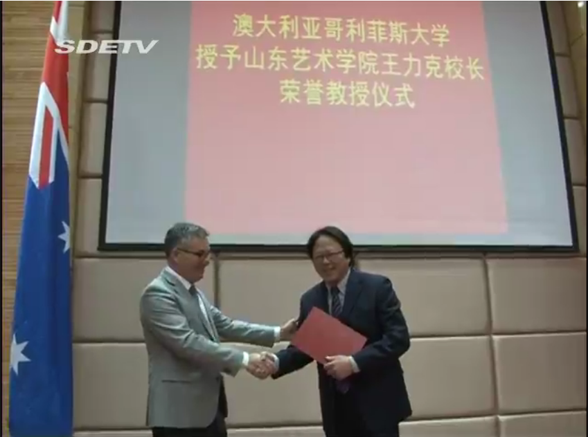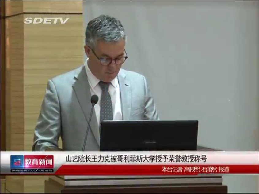 【山东教育电视台】山艺院长王力克被哥利菲斯大学授予荣誉教授称号