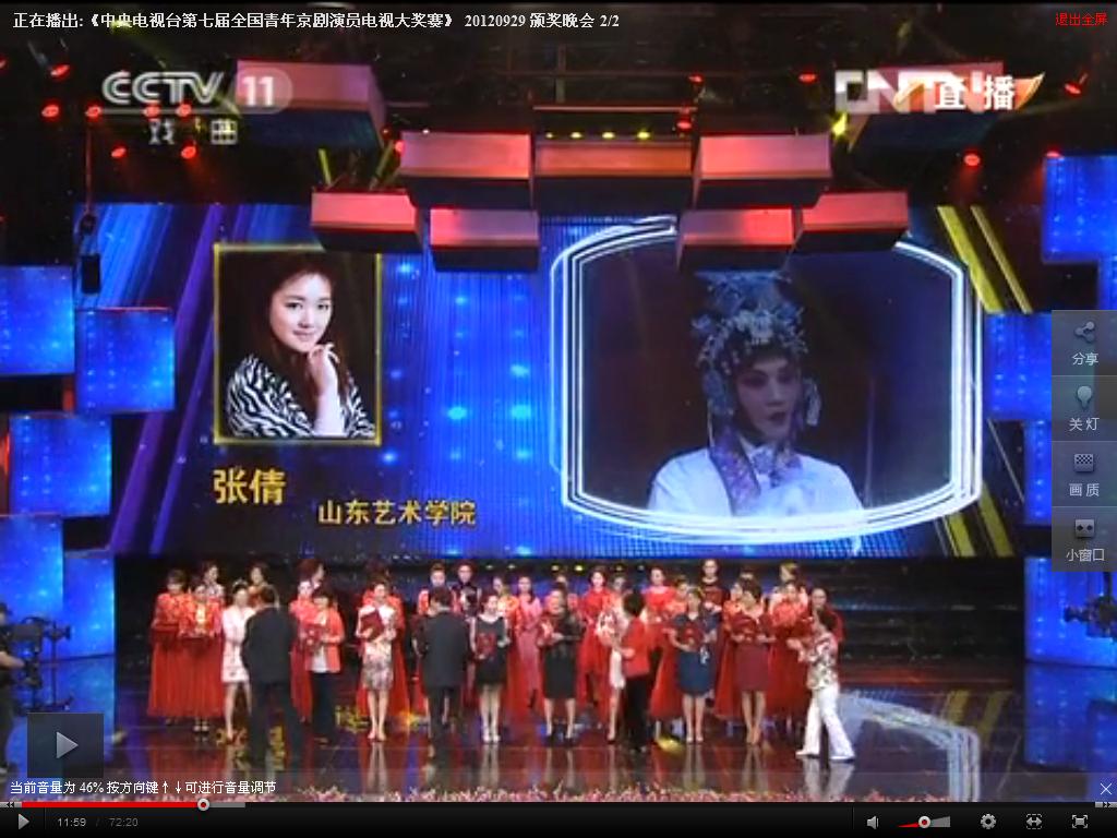 我校青年教师张倩荣获中央电视台全国青年京剧演员电视大赛银奖(青衣组)和全国唯一一个“央视网”最具网络人气大奖。