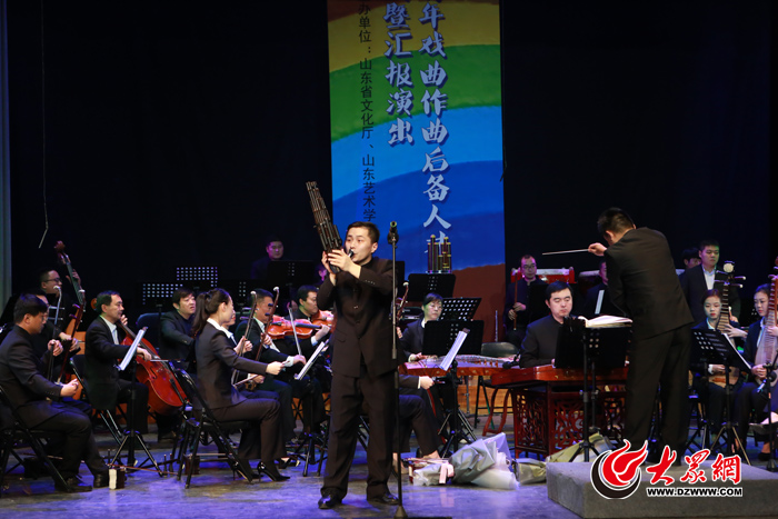 一曲热烈的器乐合奏《将军行》正式拉开了培训班汇报演出的大幕。来自全省各地市三十余戏曲院团的36名学员,用他们精湛的技艺演绎了一幅幅行云流水的乐章,诠释了戏曲音乐的独特魅力。演出中,学员们新创作的16个戏曲音乐作品,涉及山东梆子、莱芜梆子、枣梆、五音戏、吕剧、两夹弦、柳琴戏、柳子戏、茂腔、扽腔、京剧等十多个山东地方戏曲剧种。山东梆子《文姬归汉》、五音戏《土炕上的女人》、莱芜梆子《同心剑》、吕剧《状元与乞丐》、枣梆《青丝恨》、柳子戏《李清照词·一剪梅》、山东梆子《杨门女将》、京剧新编《马前泼水》等选段,全面展现了学员们在专业技术、理论水平、综合素养等方面所取得的提升。各位学员所在单位、院团紧密配合,与学员们一起为在场的观众联袂奉献了一场华美的戏曲音乐盛宴。