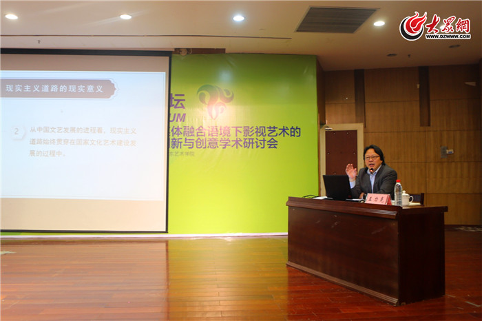 大众网济南11月13日讯(通讯员 刘强 吴兴君)11月10日,由山东省社会科学界联合会、山东艺术学院主办,山东艺术学院传媒学院承办的山东社科论坛 “知与行——媒介融合语境下影视艺术的创新与创意”学术研讨会在山东艺术学院成功举办。山东艺术学院院长王力克,山东省社会科学界联合会党组成员、副主席张宏明,山东省电影家协会主席于海丰出席开幕式并致辞。开幕式由山东艺术学院副院长刘晓静主持。开幕会后,王力克教授、中国电影家协会秘书长饶曙光研究员、北京大学艺术学院副院长陈旭光教授、《当代电视》主编张德祥教授、中国传媒大学李胜利教授、山东影视传媒集团牛烟生副总经理、中国传媒大学司若副教授等人参加了本次学术研讨会并做了精彩报告。著名纪录片导演焦波、王向群携最新纪录片《轮椅女孩》进行展映并开展学术研讨。来自中央民族大学、上海大学、山东师范大学、曲阜师范大学等省内外影视专家学者100余人莅临研讨会现场,共同围绕“创新与颠覆:影视发展新生态、挑战与革新:影视教育新常态”两个专题进行了深入研讨。