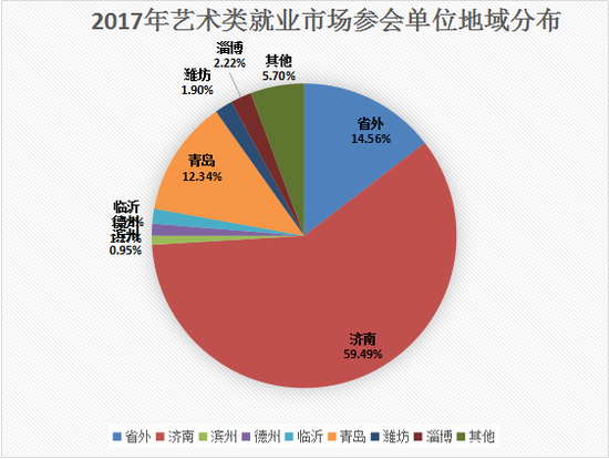 本次招聘会有来自全国各地的316家用人单位参会,其中初等教育单位9家,高等教育单位2家,国有企业11家,科研设计单位4家,民办非企业60家,三资企业16家,综合类单位40家,其它企业174家。涉及十几个行业,教育行业比重最大占23.42%,服务业次之占19.30%,文化艺术业占12.34%,建筑安装业占6.65%,广播、电视、电影和音像业占4.53%,商务服务业占4.43%,零售业占4.43%,房地产业3.24%,软件业占2.91%,批发业占1.94%,其它行业占16.50%。本次招聘会参会单位大部分为山东省内企业,占85.44%,省外共45家单位占14.56%。本次招聘会提供7888个工作岗位,来自山东艺术学院及周边院校的艺术类学生及部分学生家长5000余人参加,现场场面异常火爆。