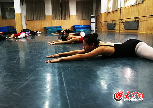 上午10点,大众网记者来到山东省文化艺术学校,这里正在进行的是舞蹈表演专业的复试。艺考期间,这里承担着山东艺术学院舞蹈学院相关专业的初试和复试。在紧挨着考场的一处练功房内,十几名考生正在进行着一字马、压腿等考试前的准备工作。