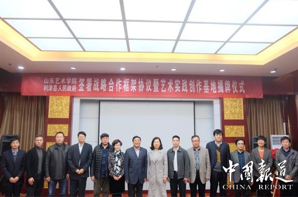 中国报道讯:(张洪祯 通讯员 苏子龙 刘磊 仪首歌) 11月14日,山东艺术学院与利津县人民政府签署战略合作协议暨艺术实践创作基地揭牌仪式在利津县举行。山东艺术学院党委副书记孔祥华,利津县委副书记、县长张晓彬,山东艺术学院传媒学院院长刘昂、美术学院副院长谭逸冰、实践与创作处副处长王健铎,山东艺术学院摄影研究生导师吴思强、传媒学院摄影工作室导师张博晨及东营利津相关部门领导出席仪式。