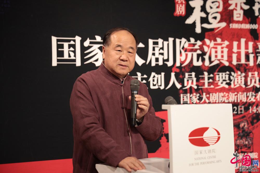 著名作家莫言先生在发布会现场畅谈原著的构思以及编剧和修改过程中的想法。国家大剧院供图 王小京摄影
