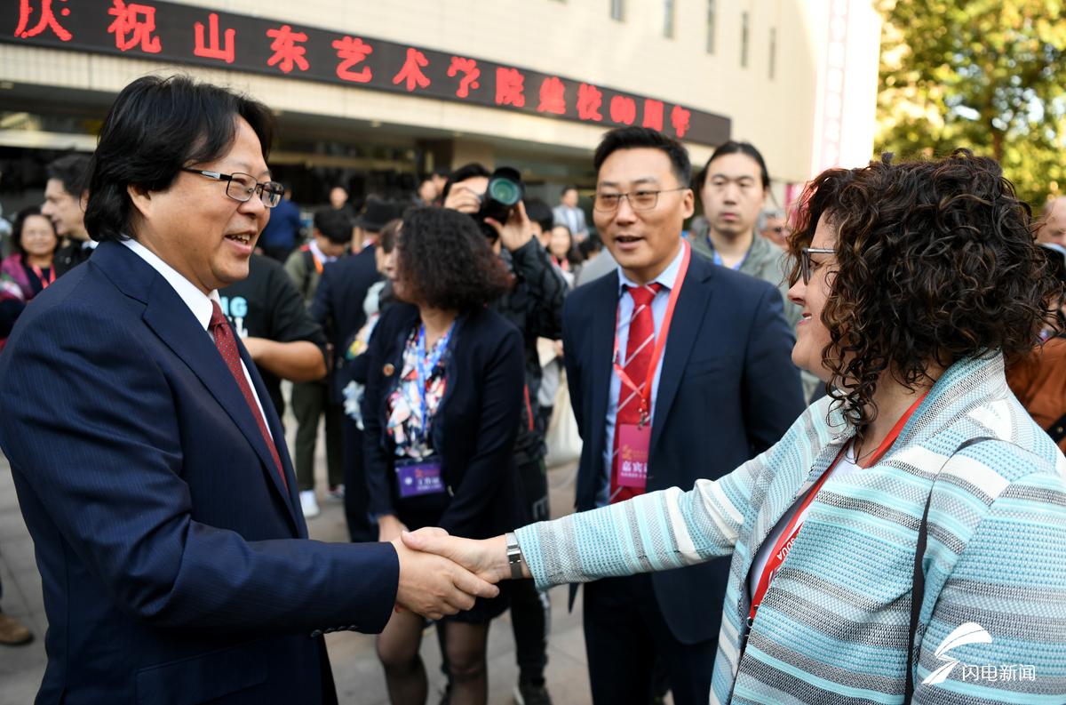 山东艺术学院迎来六十华诞,院长王力克成了最忙碌的那个人,一大早就站在学校门口迎接每一位到来的宾朋和校友。