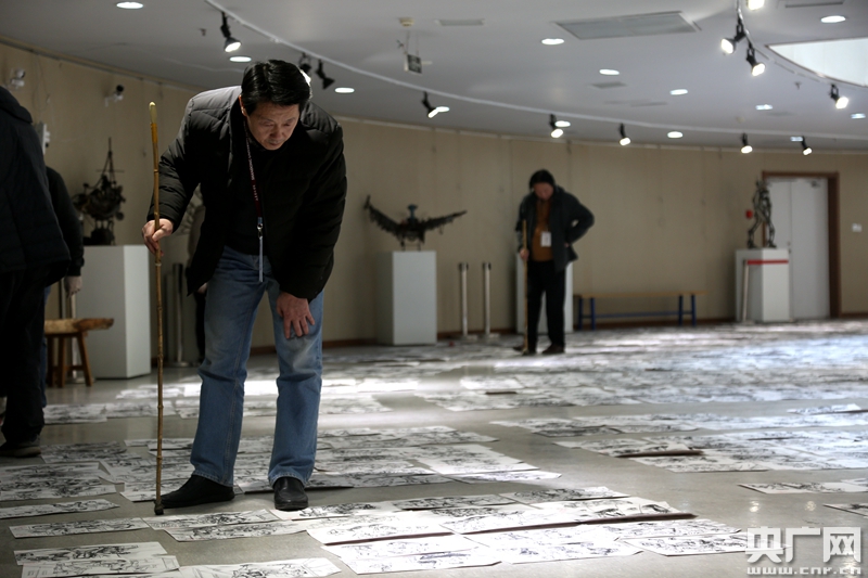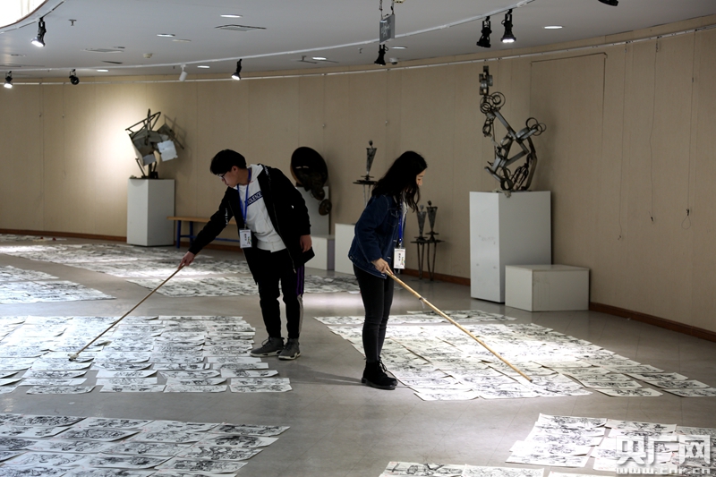 2月28日,山东艺术学院向媒体公开2019年专业招生考试美术类阅卷情况。偌大的图书馆走廊内,数千份考生的作品在地面上排开,由评卷组专家进行分档。