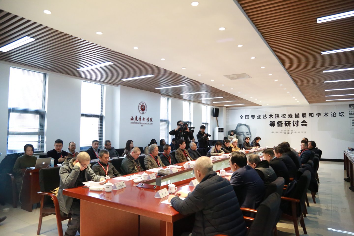 3月23日,由北京靳尚谊艺术基金会、全国艺术专业学位研究生教育指导委员会美术与设计分委会和山东艺术学院联合主办的“全国专业艺术院校素描展和学术论坛筹备研讨会”在山东艺术学院长清校区办公楼二楼会议室隆重召开。来自中央美术学院、中国美术学院、西安美术学院、天津美术学院、四川美术学院、鲁迅美术学院、广州美术学院、湖北美术学院、清华大学美术学院、上海美术学院、南京艺术学院、吉林艺术学院、云南艺术学院、广西艺术学院、新疆艺术学院、内蒙古艺术学院以及山东艺术学院等17所国内最核心专业艺术院校的50多位专家参加研讨会及欢迎式。研讨会是由靳尚谊先生发起、曹意强先生担任学术主持的“全国专业艺术院校素描展和学术论坛”的前奏,其规格之高、质量之精、学术之深都是近年来全国少有的一次学术会议。