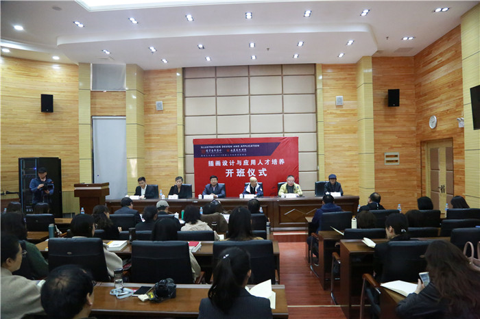 大众网济南·海报新闻4月2日讯(记者 尹延杰 通讯员 王志军)4月1日,山东艺术学院2019年度国家艺术基金艺术人才培养资助项目《插画设计与应用人才培养——以山海经形象创新设计为例》开班仪式在长清校区办公楼报告厅举行。山东艺术学院党委副书记孔祥华,中国美术家协会服装艺委会主任、深圳大学艺术学院院长、本项目特邀讲座专家吴洪,来自齐鲁工业大学、山东工艺美术学院、山东女子学院的专家,山东艺术学院相关职能部门负责人、设计学院党政负责人及培训班30名学员参加仪式。仪式由本项目负责人设计学院郑军教授主持。