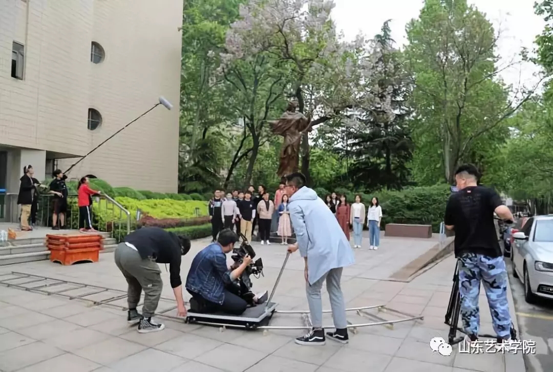 2019年5月4日是五四运动100周年的日子,一直到当晚10点多,山东艺术学院《以青春歌唱祖国》MV(以下简称“MV”)还在进行紧张的后期制作,按照省教育厅安排如期于5月5日迎着朝阳上线,并于5月6日在“学习强国”学习平台发布。万余名新时代山艺青年秉承“闳约深美”的校训精神,“以青春歌唱祖国”,向百年五四致敬,向为祖国建设挥洒青春的前辈致敬,向新时代致敬!MV上线后,一时间转发、点赞、好评如潮,并立即被山东省教育厅官方微信公众号“山东教育发布”、中国教育在线、山东教育电视台、齐鲁壹点、《生活日报》网易客户端全文转载,社会反响热烈。上级主管部门和兄弟院校相关领导给予充分肯定,“感谢山艺对这次活动的支持和重视,会尽力把这部好作品作为重点向教育部等部门推荐”,认为MV“拍得很专业,简直就是一部青年运动史”“专业就是专业,献膝”“估计能上央视啊”。来自德国的留学生、我校音乐学院作曲专业的NENNINGER JAN NICOLAI同学在微信评论区写到:“我非常感谢中国和我的大学——山东艺术学院,谢谢你们!我们的MV令我永生难忘。谢谢中国。I am happy to grow up in your country. ”