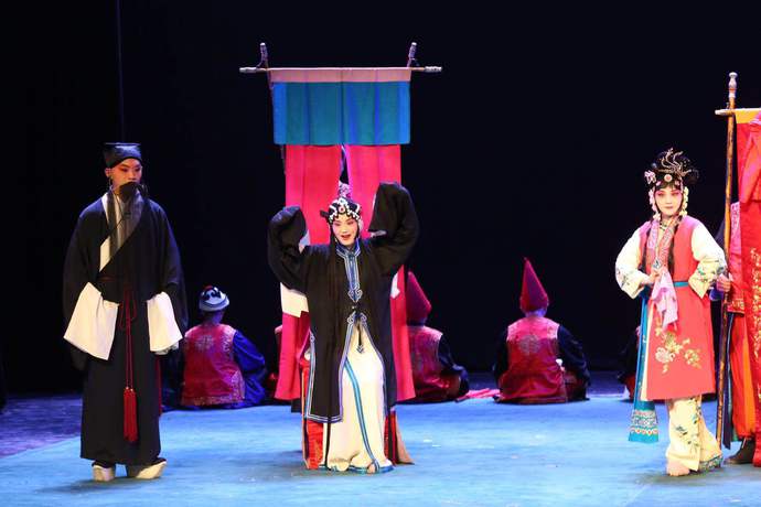 5月23日晚,山东艺术学院2019“闳美山艺”毕业展演季之“春华秋实,桃李芬芳”戏曲专场汇报演出在文东校区艺术剧场上演。山东省高等学校艺术教育联盟主席、山东艺术学院原副院长高启光,省委教育工委思想政治工作处副处长王莉,山东艺术学院老专家李文娟,山东省吕剧院副院长马常委,山东省艺术研究院研究员安啸梅,烟台京剧院国家一级琴师萧红智以及学校相关单位负责人与社会各界热心观众近700人一同观看了演出。
