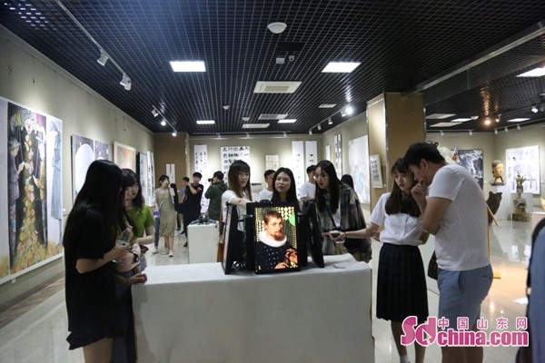 展览过程中,山东艺术学院美术学院教授梁文博、唐鸣岳、实验艺术系主任孙磊就展览组织、作品特色、评奖情况等方面,接受了媒体的联合采访。作品展将从5月28日一直持续到6月2日。
