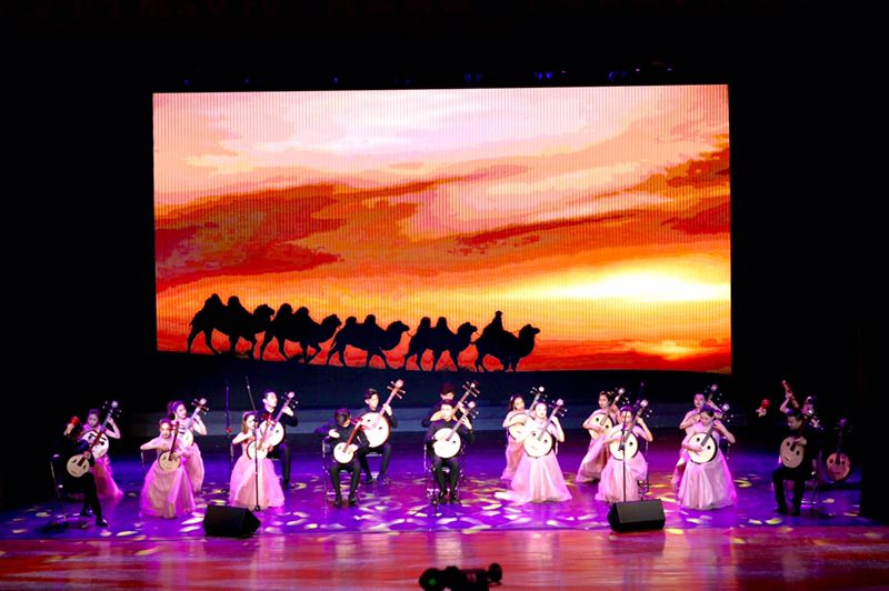 晚会在一首充满异域风情的阮重奏《丝路驼铃》中拉开帷幕。女声独唱《中国进入新时代》让观众们深切感受到祖国的飞速发展;独舞《扶犁晚歌》通过一把犁、一首歌,田埂月下一老者,表达了师生对人与自然和谐共存的思考;小提琴独奏《金色的炉台》表现了当年炼钢工人与毛主席心心相印的深切情感;歌剧《丑角》的选段《穿上戏袍》,让我们着实感受到了西方歌剧的无限魅力;双长笛与钢琴三重奏《G大调奏鸣曲》演绎的宛若翩翩起舞的男女舞者,华丽而柔美;曾经唱遍大江南北的歌曲《我是中国人》,让大家感受到中国人的磅礴气势和自强、自立与自尊的高贵品格;而接下来的歌曲《让我们携手同行》更是展现了我校教师的完美唱功;话剧《雪落无声》(片段)作为国家艺术基金2019年度舞台艺术创作资助项目,采取“戏中戏中戏”的形式进行多时空的交叉演绎,将个体生命反思与时代命题、民族命运相关联,折射出不同时代的个体担当与家国情怀;一曲《罢宴》既讲述了寇准受乳母教诲而改过的故事,又完美展现了京剧老旦的高超技艺;专为黄河滩区迁建而创作的舞蹈《厚土》,将滩区人民的生存状态与精神面貌用肢体语言进行了别样呈现。