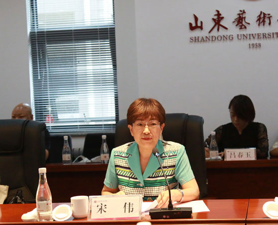 宋伟在座谈会上指出,作为省滩区迁建专项小组成员单位,山东艺术学院领导班子高度重视,迅速行动,深入贯彻落实习近平总书记关于文艺工作的重要论述,按照省委书记刘家义同志在山艺调研座谈讲话精神,科学编制“黄河入海”主题艺术创作方案,努力创作把握时代脉搏、记录脱贫攻坚非凡历程、反映时代变迁的精品力作,取得积极成效和阶段性成果,起到良好社会效果。她要求山东艺术学院结合正在开展的“不忘初心、牢记使命”主题教育,聚焦乡村振兴战略实施和打赢脱贫攻坚战,进一步做好“黄河入海”系列艺术创作,用文艺的力量激发广大干部群众干事创业的激情。一是当好新时代的记录者。希望山东艺术学院师生围绕全省滩区迁建这一重大民生工程、德政工程,把各级干部群众砥砺奋进、追梦圆梦的不凡业绩,滩区百姓生产生活巨大变化挖掘深、展示好。二是当好“以人民为中心”创作导向的实践者。希望学校师生扎实贯彻为人民创作的导向,走向滩区迁建工程主战场,走近滩区新社区、镇村、百姓,创作经得起人民和历史检验的好作品,引发老百姓发自内心的热爱和共鸣。三是当好精品力作的创造者。希望学校师生切实提高文艺创作水平和质量,不断锤炼和提高作品的精神高度、文化内涵和艺术价值,真正以叫得响、传得开、留得住的文艺精品奉献人民。