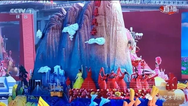 山东彩车“国泰民安”承载着山东人民对祖国美好的祝福,展现齐风鲁韵的气势磅礴,也凝聚着山艺人的智慧和心血。这是我校继1999年设计国庆50周年山东彩车“海上明珠”、2009年设计国庆60周年山东彩车“岱青海蓝”之后,又一次光荣承担国庆山东彩车的设计制作工作。
