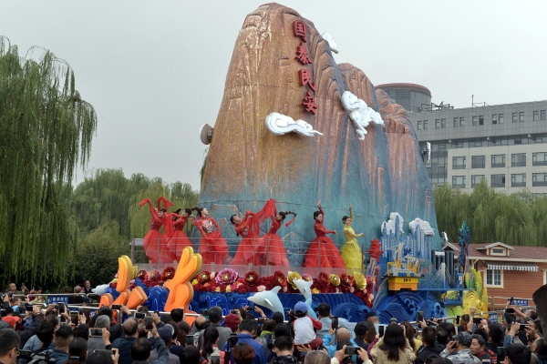 【联合网 山东】“国泰民安”彩车在济南泉城广场展出