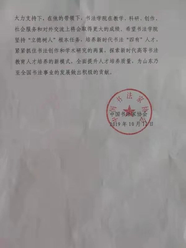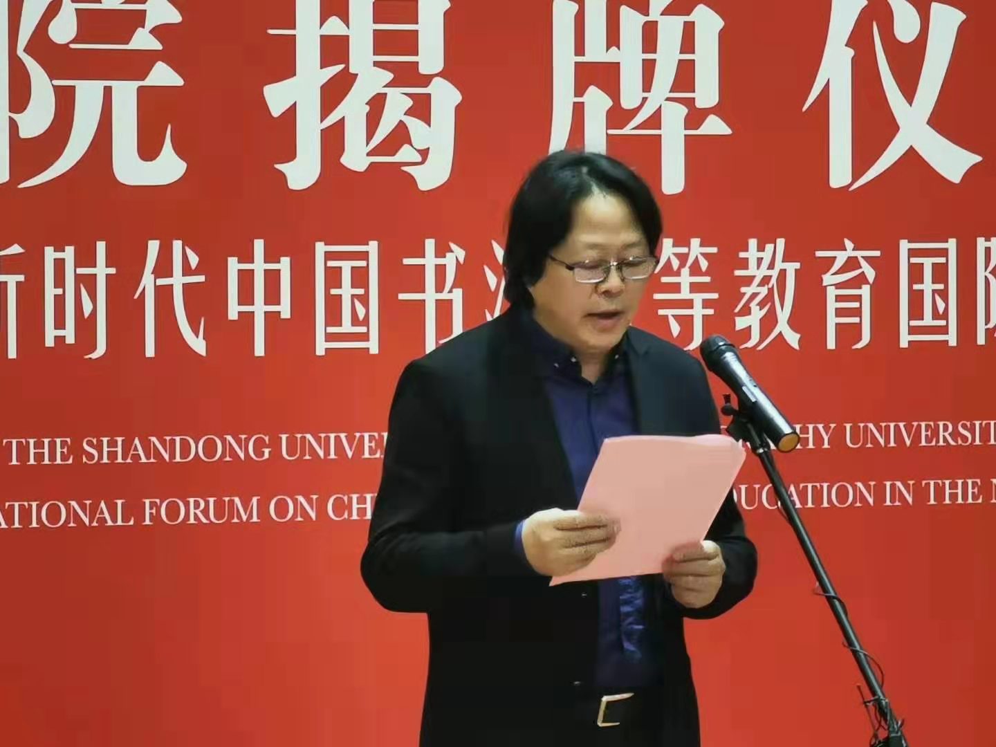 10月19日,山东艺术学院书法学院揭牌仪式暨“传承与开拓——新时代中国书法高等教育国际论坛”开幕式在山东艺术学院长清校区举行。