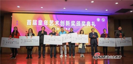 颁奖典礼上,山东艺术学院教育发展基金会秘书长、学校党办院办主任孔亮作首届童年艺术创新奖评选情况的说明。他讲到,依据《“童年艺术创新奖”评选办法》,首届童年艺术创新奖评审委员会7位专家在监督组的监督下,对申报参评、创作于2018年1月1日至2018年12月31日期间的17项作品(含集体项目7项,个人项目10项)进行了认真评选,评选程序规范严格,公正公平公开。最终,庆祝改革开放40周年“时代的温度”山东艺术学院建校60周年美术作品展、大型原创歌剧《檀香刑》获评重大项目,每个项目奖励10万元;纪录片《河水洋洋》、三人舞《海洋有个王大娘》和群舞《喜饽饽》《闯海人》《喜鹊衔梅》获评个人项目,每个项目奖励5万元。