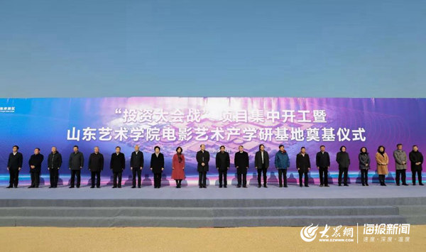大众网·海报新闻讯 11月29日,灵山湾影视文化区“投资大会战”项目集中开工暨山东艺术学院电影艺术产学研基地奠基仪式在青岛西海岸新区隆重举行。
