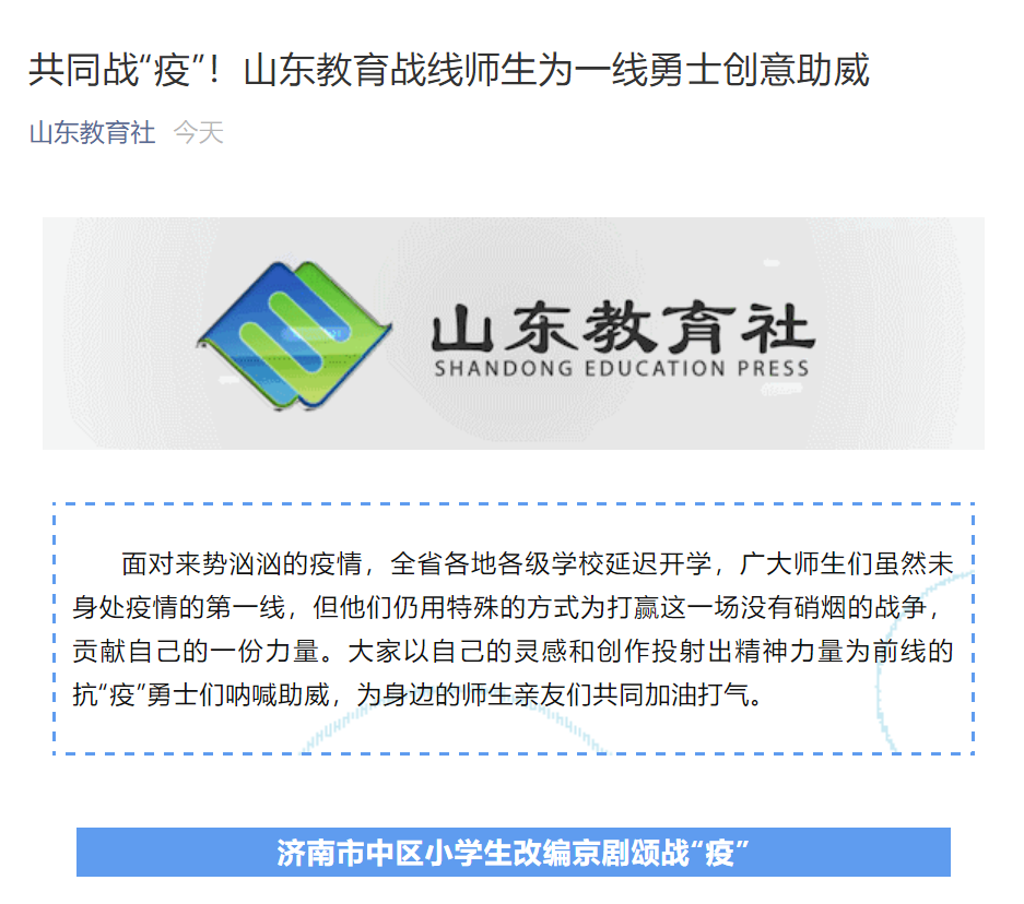 【山东教育社】共同战“疫”!山东教育战线师生为一线勇士创意助威