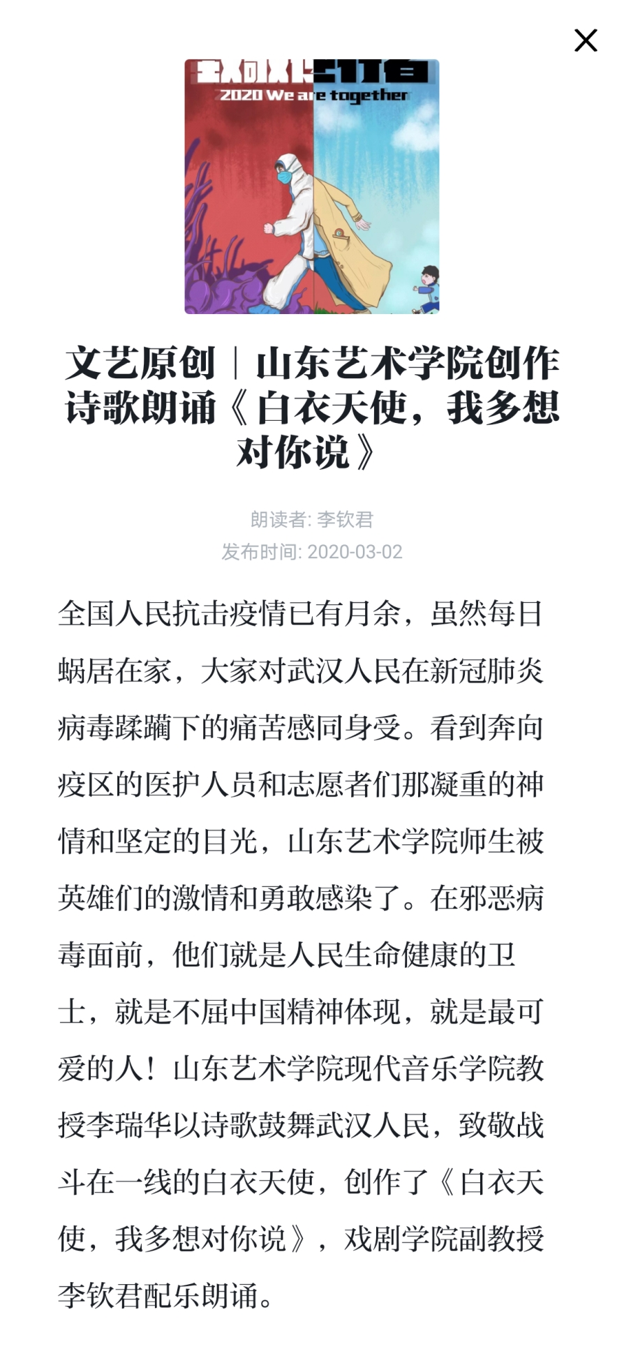 【学习强国】文艺原创|山东艺术学院创作诗歌朗诵《白衣天使,我想对你说》