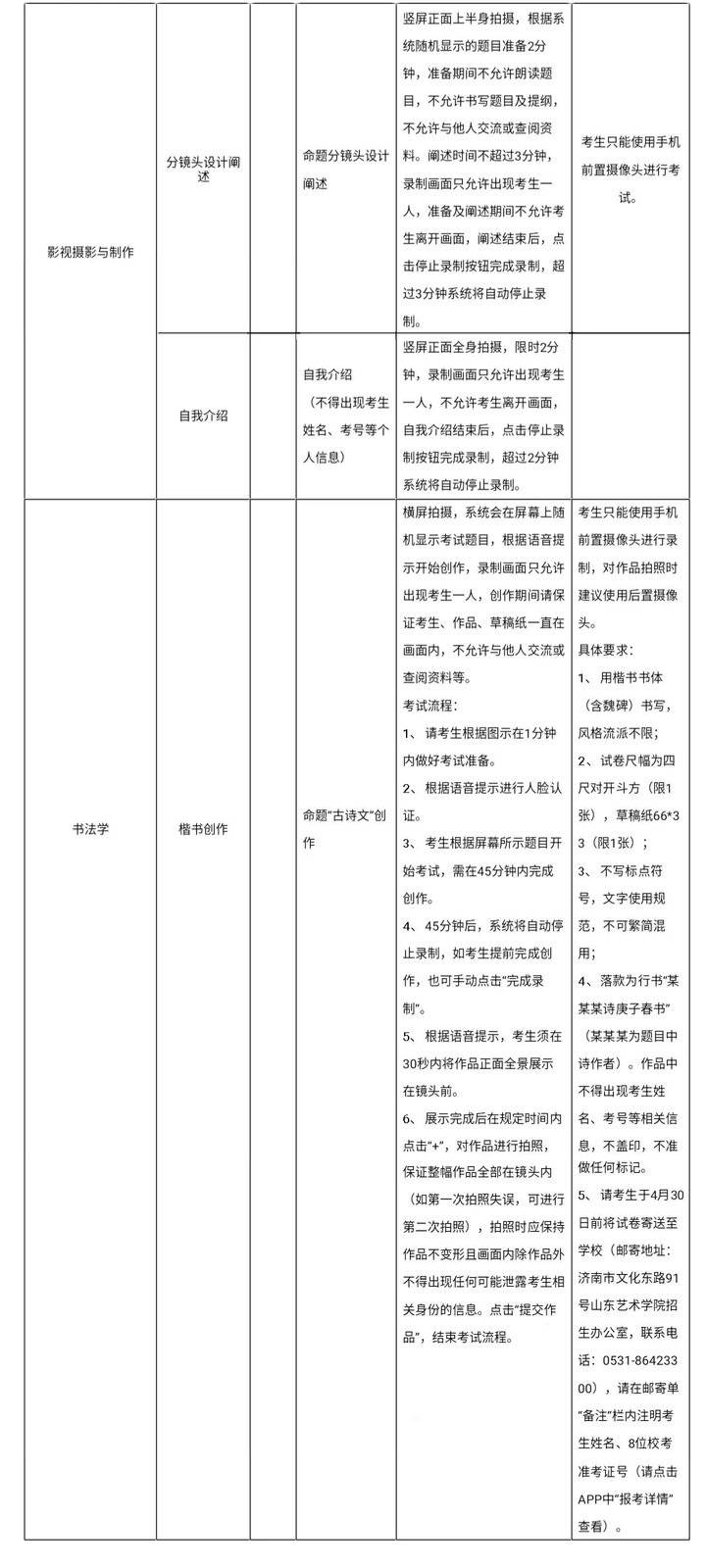 7.请广大考生切实做好自身防护,合理安排时间,安心备考。疫情防控期间,我校官方网站(www.sdca.edu.cn)、我校本专科招生信息网站(http://zsbgs.sdca.edu.cn)、山东艺术学院官方微信公众号(sdca1958)将及时发布相关最新信息,考生如需咨询,可致电:0531-86423303,0531-86423300(8:30—17:30),线上考试技术问题可咨询平台客服QQ:800180626。